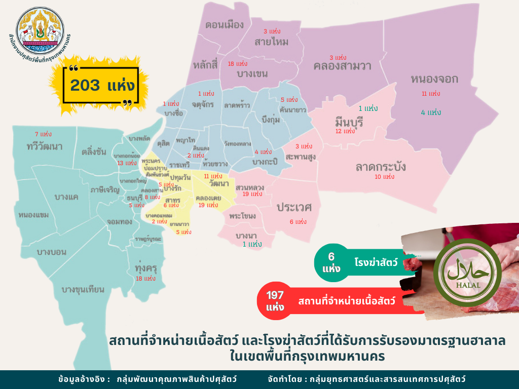 สถานที่จำหน่ายเนื้อสัตว์ และโรงฆ่าสัตว์ที่ได้รับการรับรองมาตรฐานฮาลาล ในเขตพื้นที่กรุงเทพมหานคร