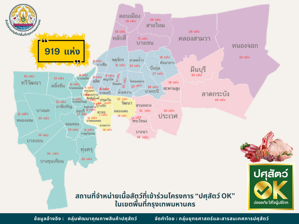 สถานที่จำหน่ายเนื้อสัตว์ที่เข้าร่วมโครงการ “ปศุสัตว์ OK” ในเขตพื้นที่กรุงเทพมหานคร