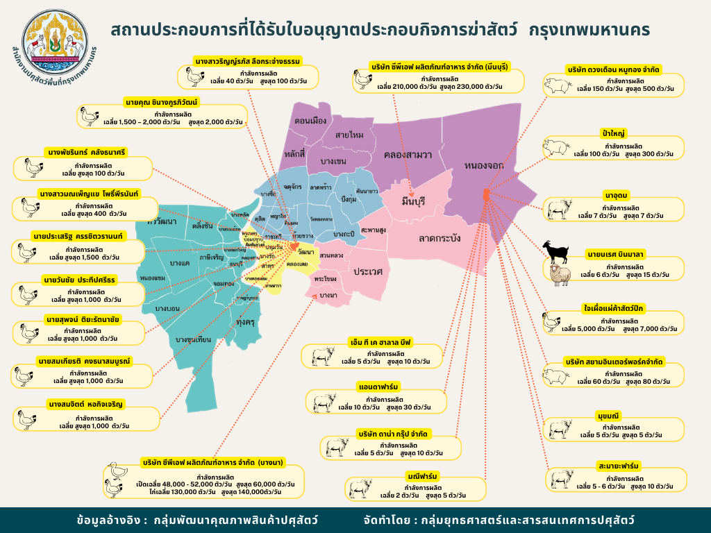 สถานประกอบการที่ได้รับใบอนุญาตประกอบกิจการฆ่าสัตว์ กรุงเทพมหานคร